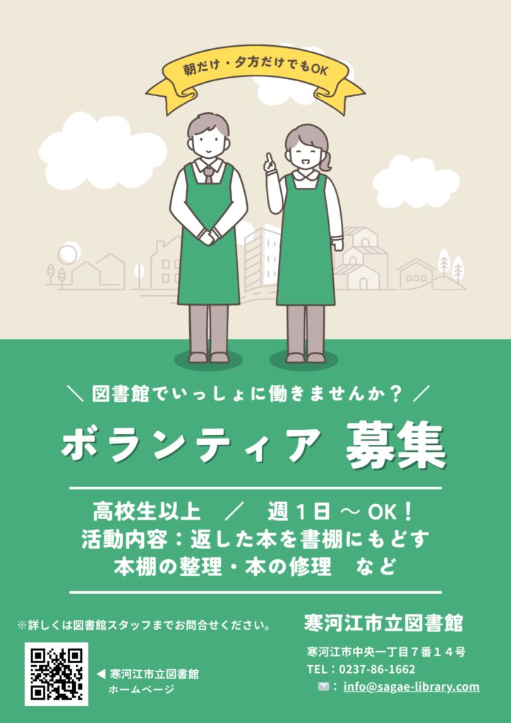 ◆募集:高校生以上で寒河江市立図書館に通える方